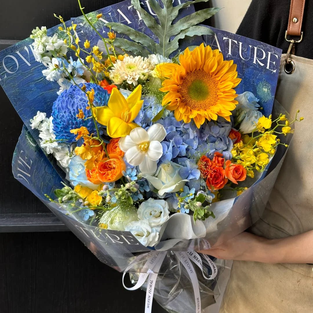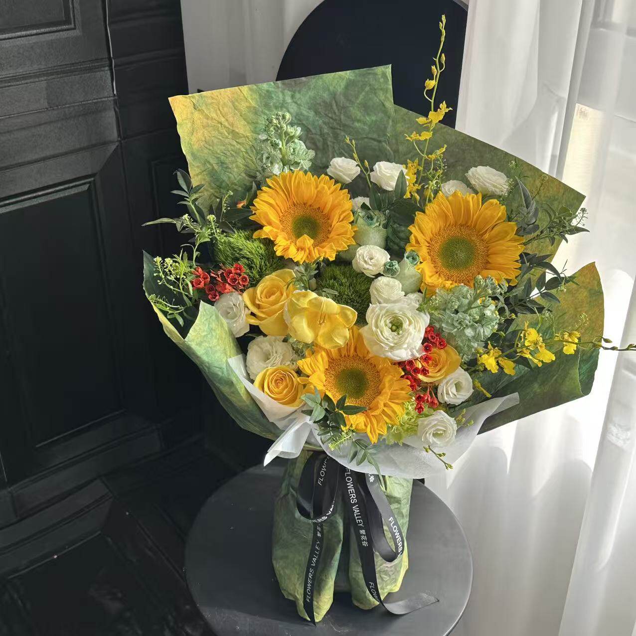 油画感花束送老师绿心向日葵生日花送男士花束北京天津鲜花毕业季