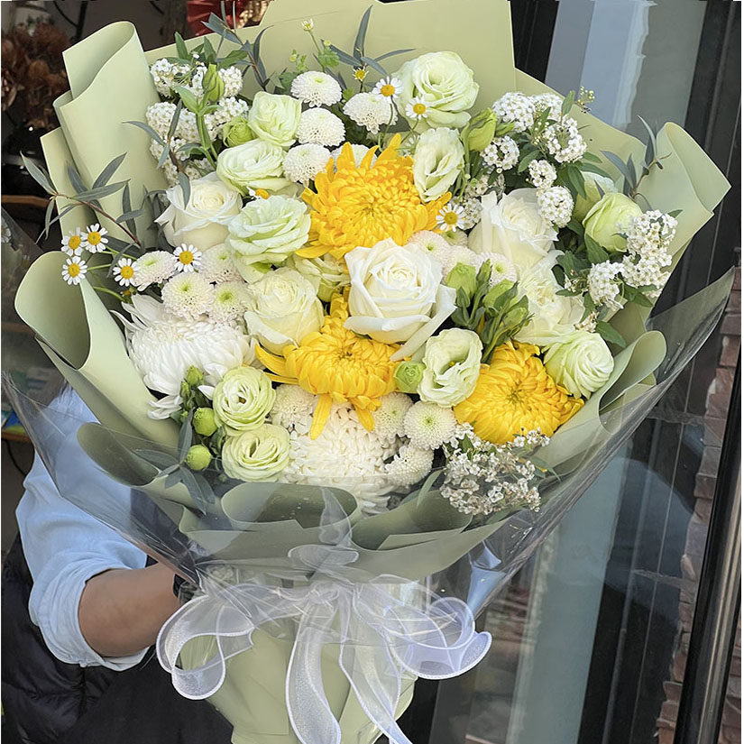 天津鲜花同城速递清明节祭祖扫墓黄白菊花花篮扫墓花束手捧鲜花店