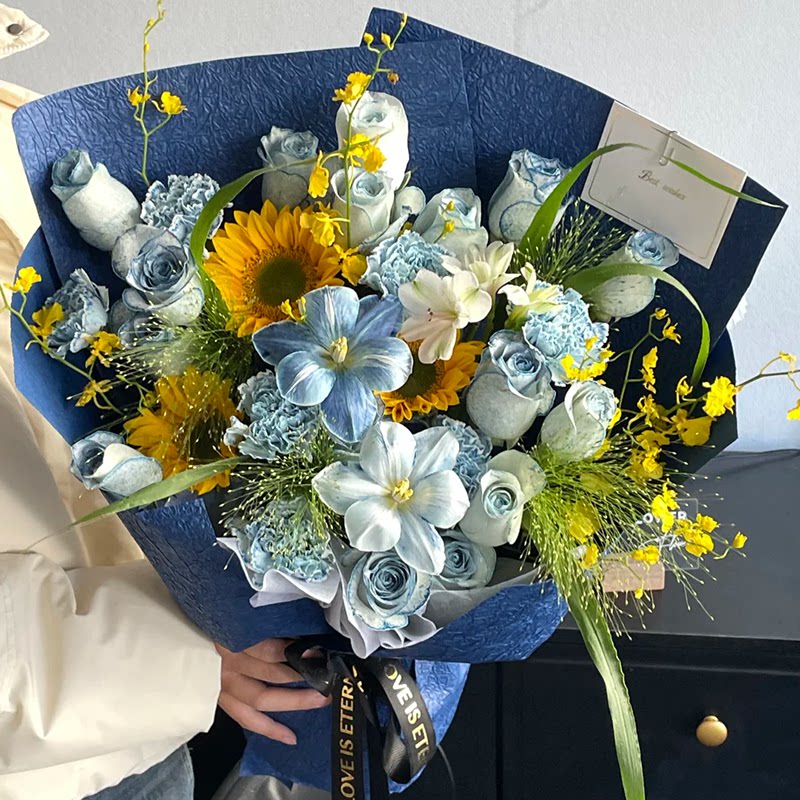 毕业季同城鲜花康乃馨玫瑰向日葵香槟混搭送北京上海天津同城配送