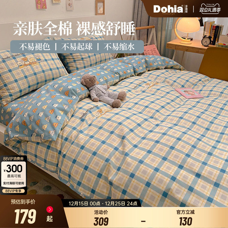 洁丽雅全棉100纯棉床品四件套被套床上用品宿舍床单三件套床笠款