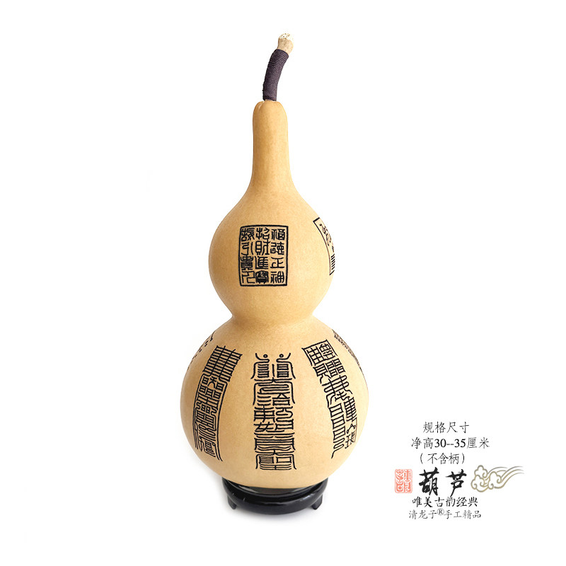 钱财旺利与财禄丰盈葫芦全手工雕刻龙章凤篆家居吉庆摆件道家用品