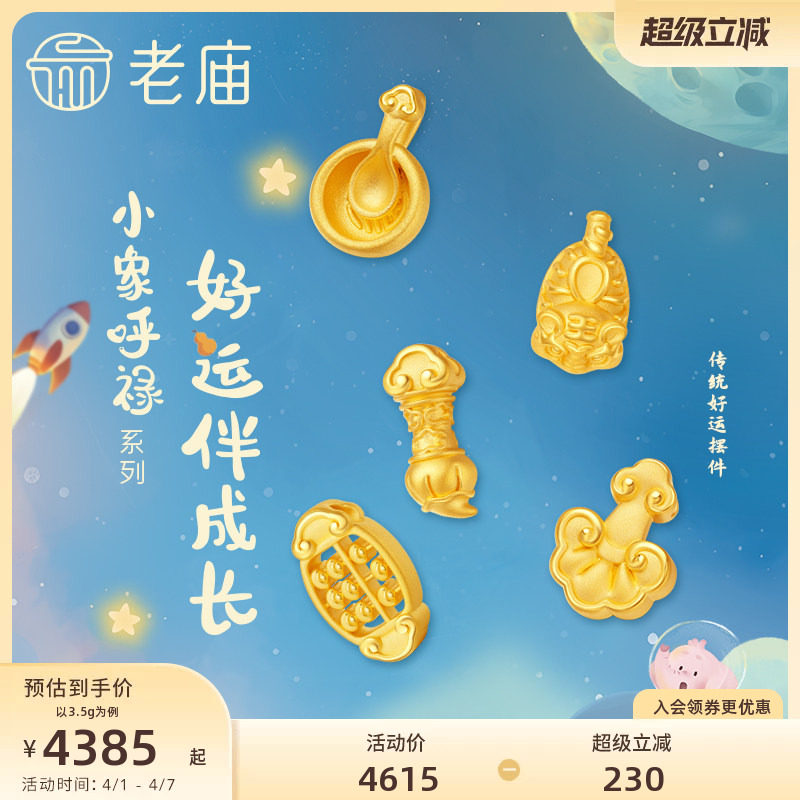 老庙黄金小象呼禄传统5D足金饭碗如意状元笔算盘虎头鞋摆件抓周