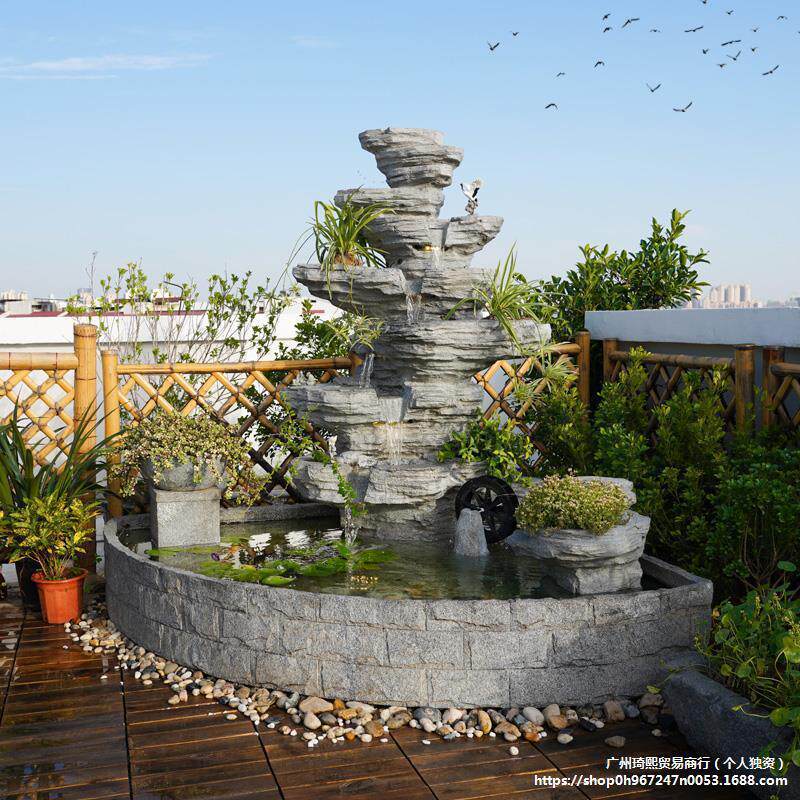 大型假山流水喷泉别墅花园庭院装饰公司阳台户外鱼池瀑布景观摆件