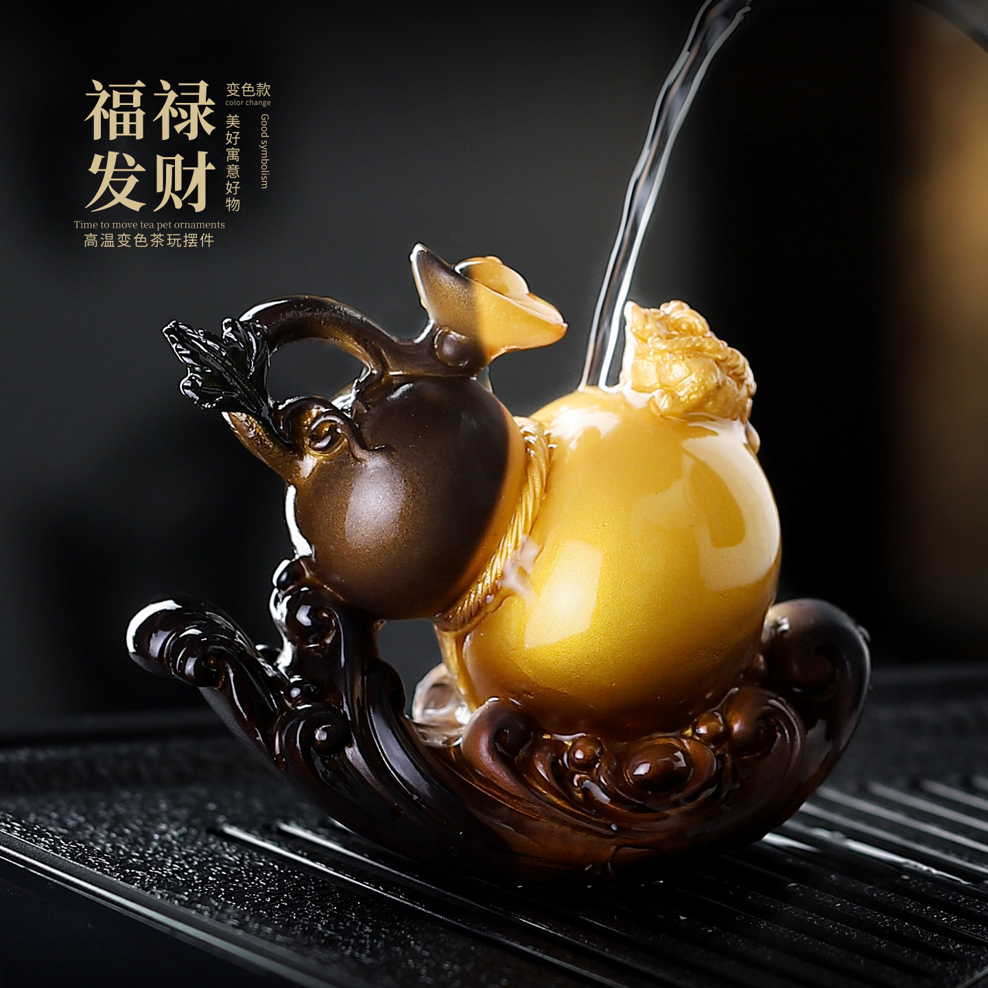 变色福寿禄茶宠小摆件可养茶具配件中式葫芦腾云驾雾金蟾吉祥元宝
