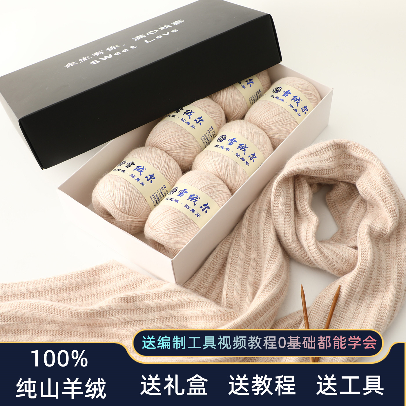 特级围巾毛线手工diy山羊绒线中粗毛线团女围脖送男友编织材料包