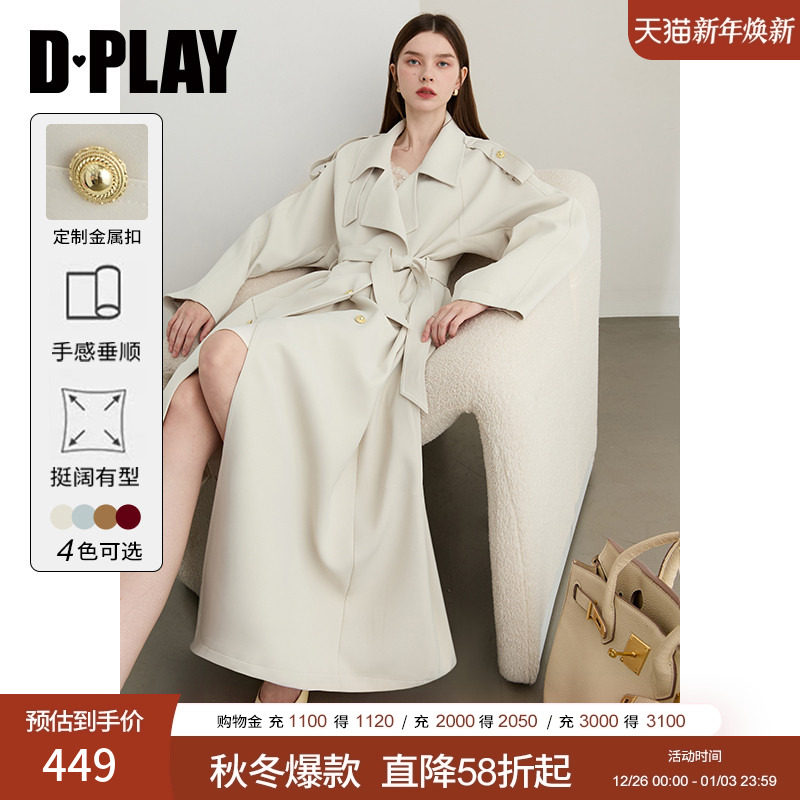 DPLAY2026年春季新款白色风衣外套女时尚好看春装宽松长款大衣