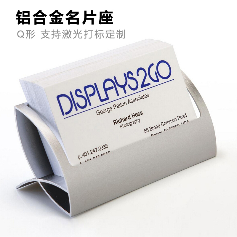 Q款弧形个性定制名片盒女士男式铝合金名片盒底座定制企业姓名LOGO桌面名片架名片收集盒金属名片收纳座