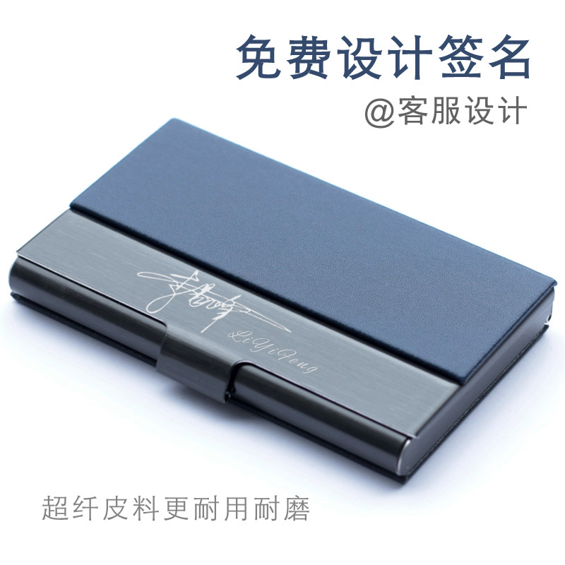 商务名片盒男士名片夹女士加厚大容量卡包超纤皮面料钛黑身份证银行卡包时尚金属名片盒免费定制LOGO