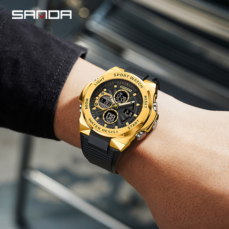 三达男士新款户外运动电子时尚多功能学生训练夜光防水个性手表男