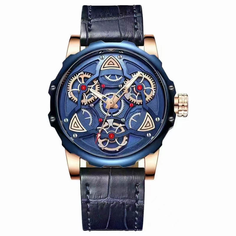 欧美版机械镂空金属齿轮个性手表时来运转进口机芯防水真皮学生表