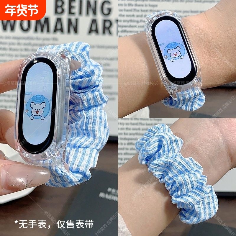 适用小米手环10/9/8腕带NFC新款大肠发圈3/4腕带小米5/6智能手表表带替换7NFC运动个性手表带男女款运动夏天