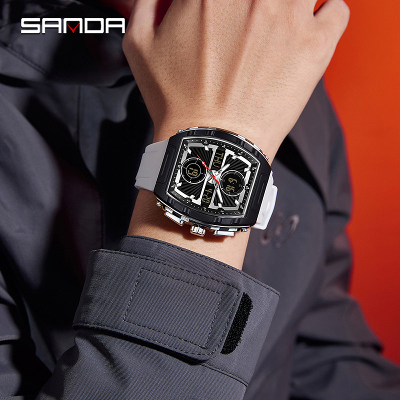 三达青少年酒桶形男士户外运动电子夜光防水多功能学生个性手表潮