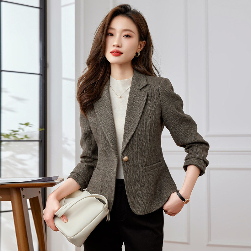毛呢小西装女士短款格子修身气质一粒扣2025新款高档外套小西服女