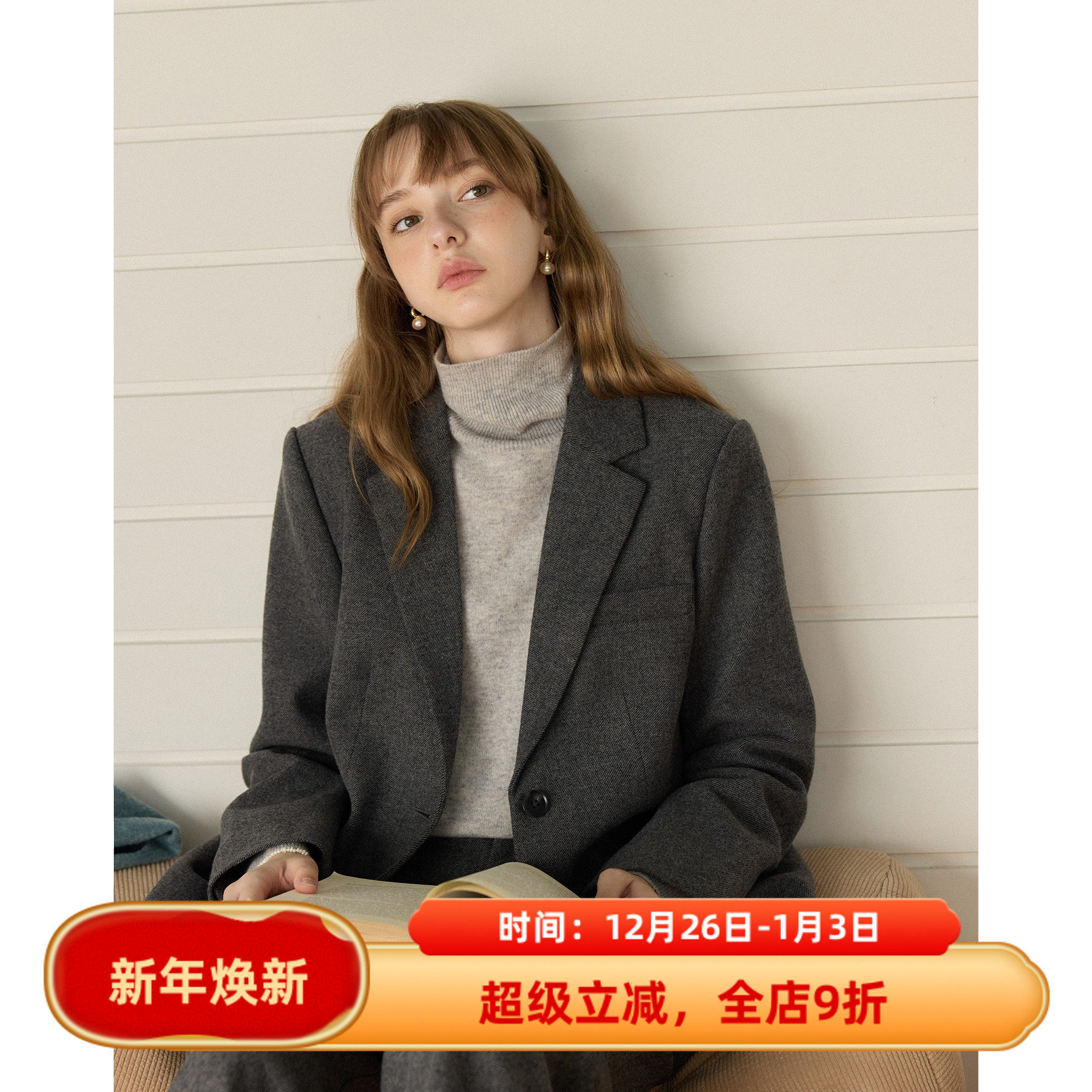 英伦复古风灰色宽松短款羊毛毛呢西装外套女呢子秋冬款通勤小个子