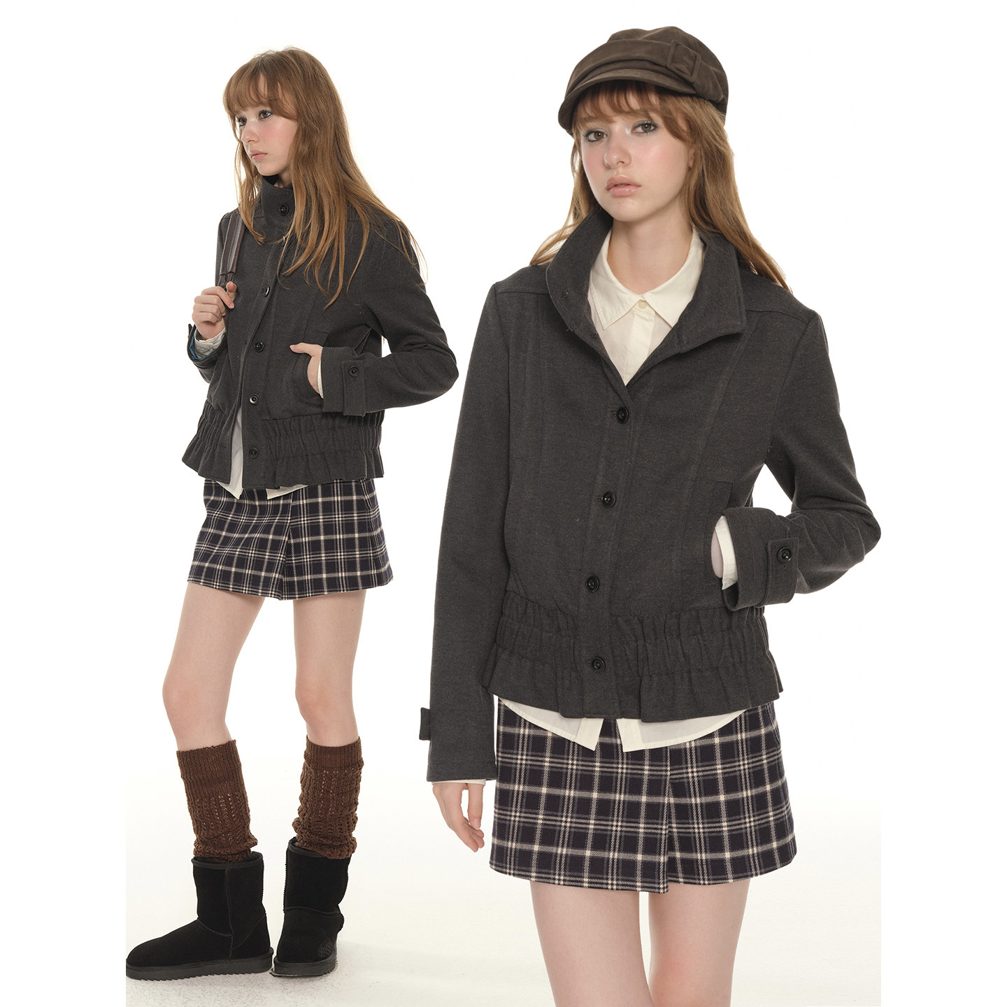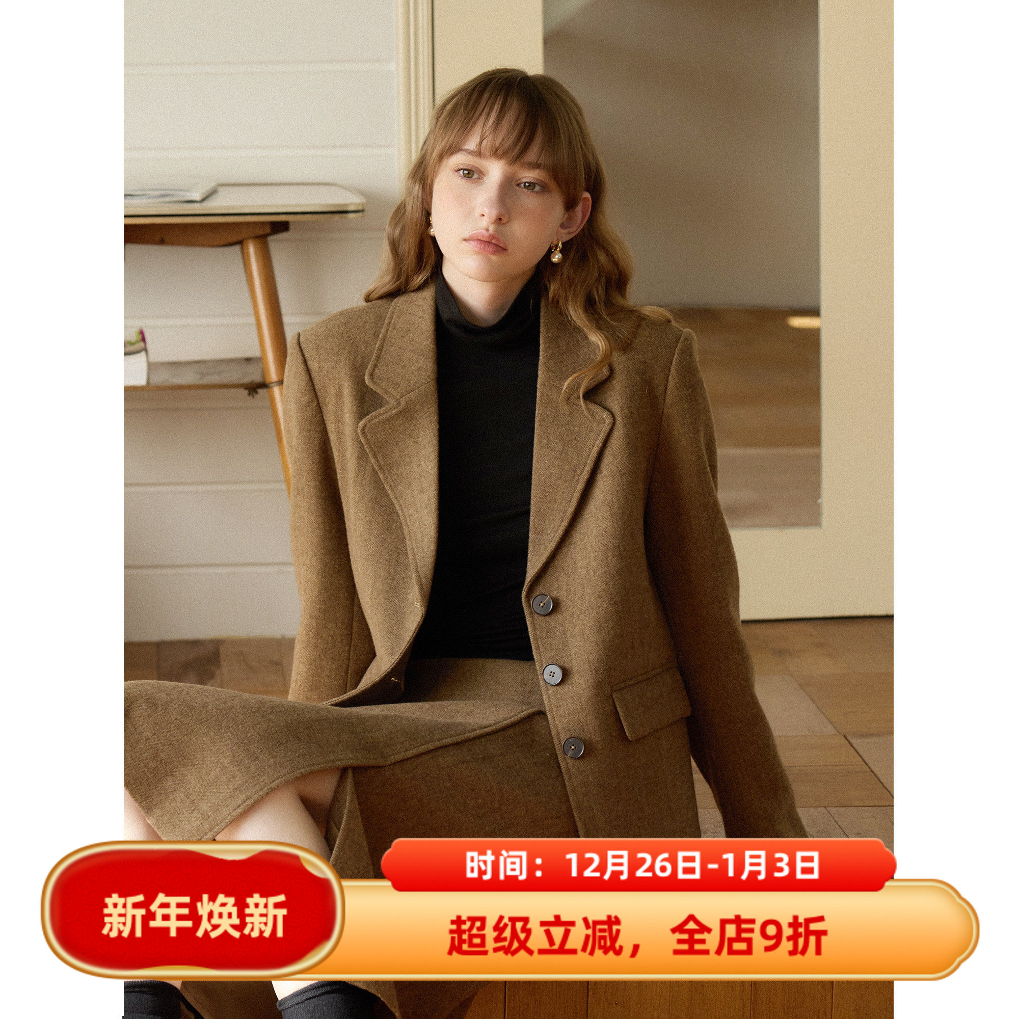 UNRETRO 复古立领正肩修身收腰毛呢大衣女冬季新款短款小西装外套