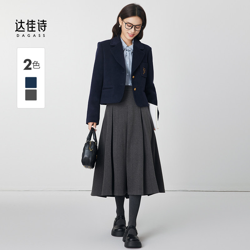 达佳诗毛呢西装外套女生秋冬学院风小个子上衣气质休闲短款呢大衣