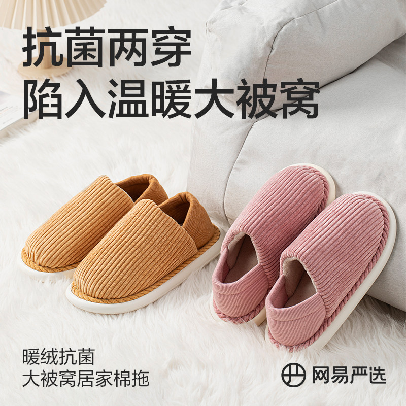 网易严选家居棉拖鞋2025秋冬男女保暖厚底踩屎感情侣室内防滑拖鞋
