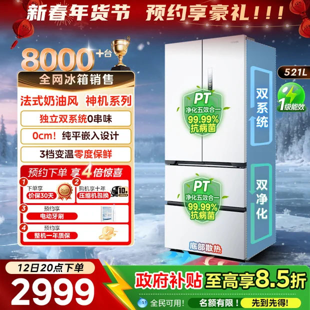 容声526L双净双系统法式多门一级能效变频家用冰箱以旧换新补贴