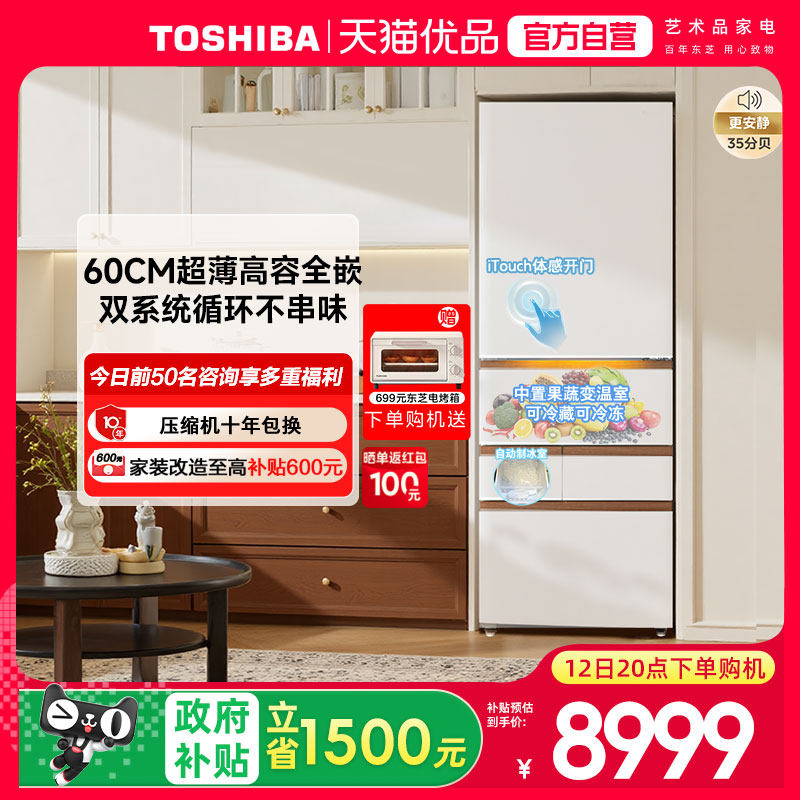 东芝大白桃Pro483超薄零嵌入双系统小户型大容量制冰家用多门冰箱