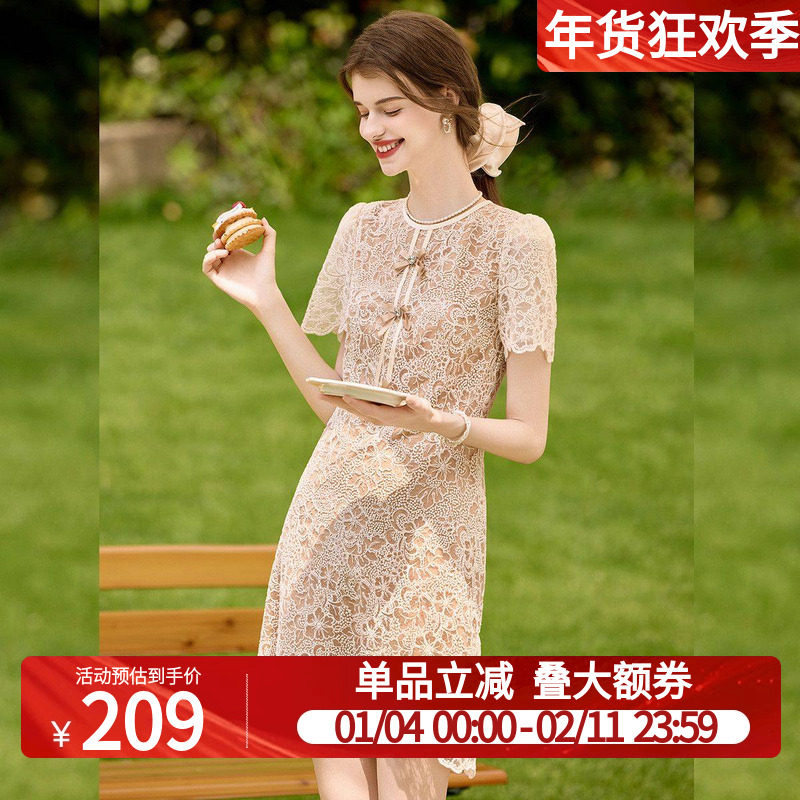 【现货】25夏季新款专柜同款新中式复古蕾丝旗袍刺绣中长款连衣裙