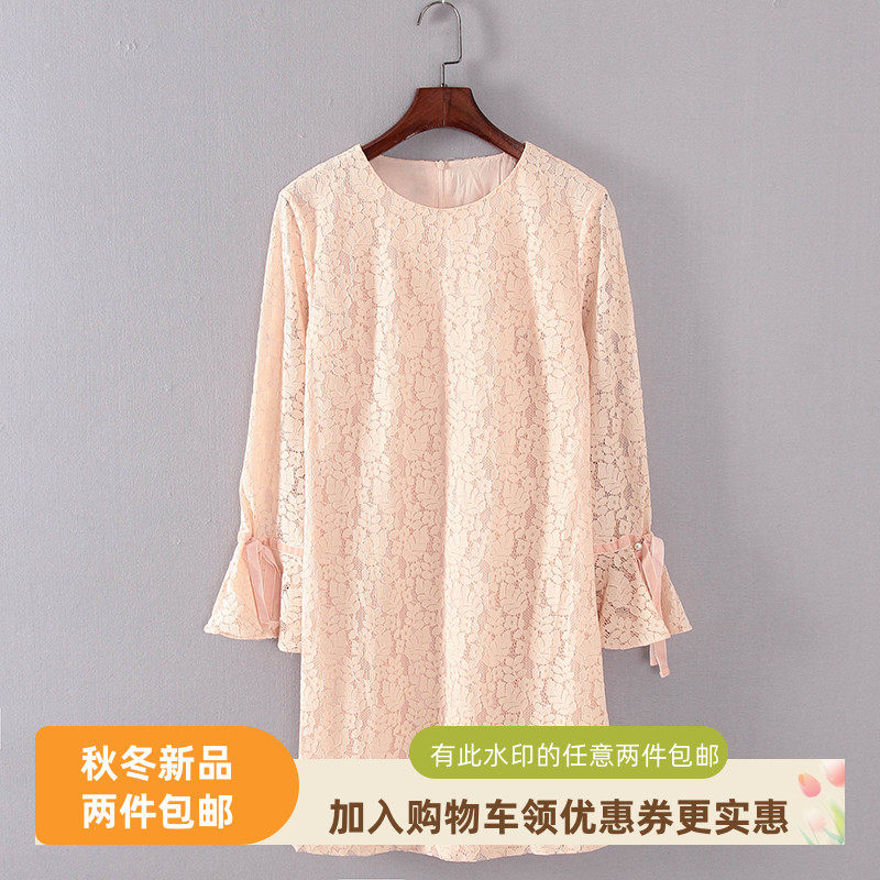 M2女装品牌折扣法式连衣裙女蕾丝镂空洋气红色宽松大码打底中长款