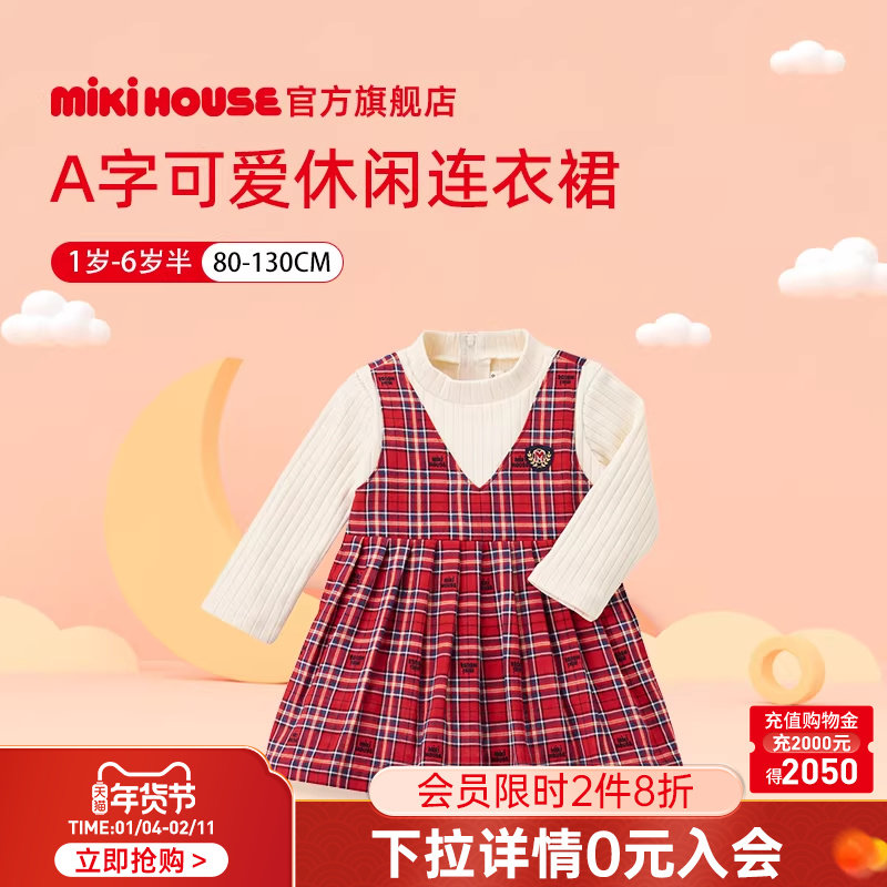 MIKIHOUSE女童连衣裙春秋新款儿童裙子宝宝春装A字高领连衣裙童装