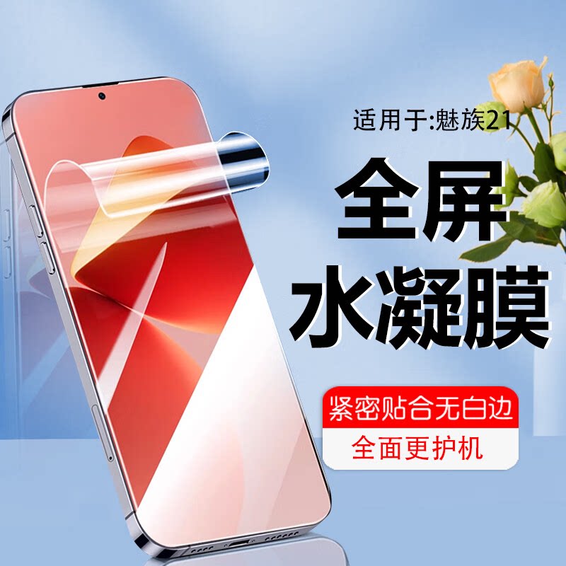 适用 魅族21手机膜魅族21保护膜全胶水凝软膜全屏覆盖隐形膜触控灵敏支持指纹解锁贴膜