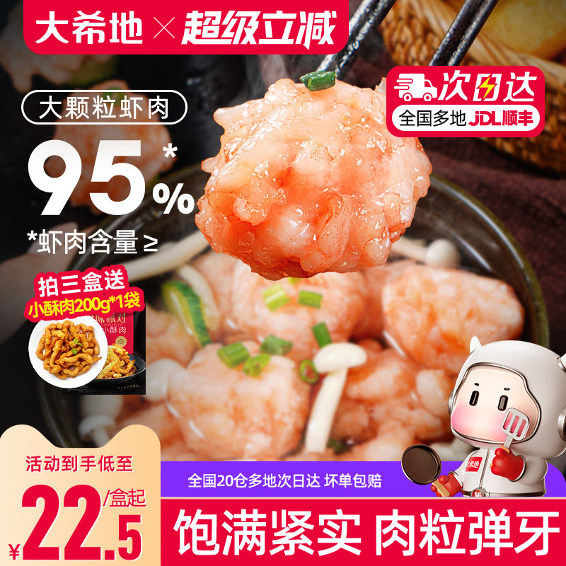 大希地虾滑新鲜手打挤袋火锅食材生鲜活速冷冻虾仁饼低脂虾丸虾球
