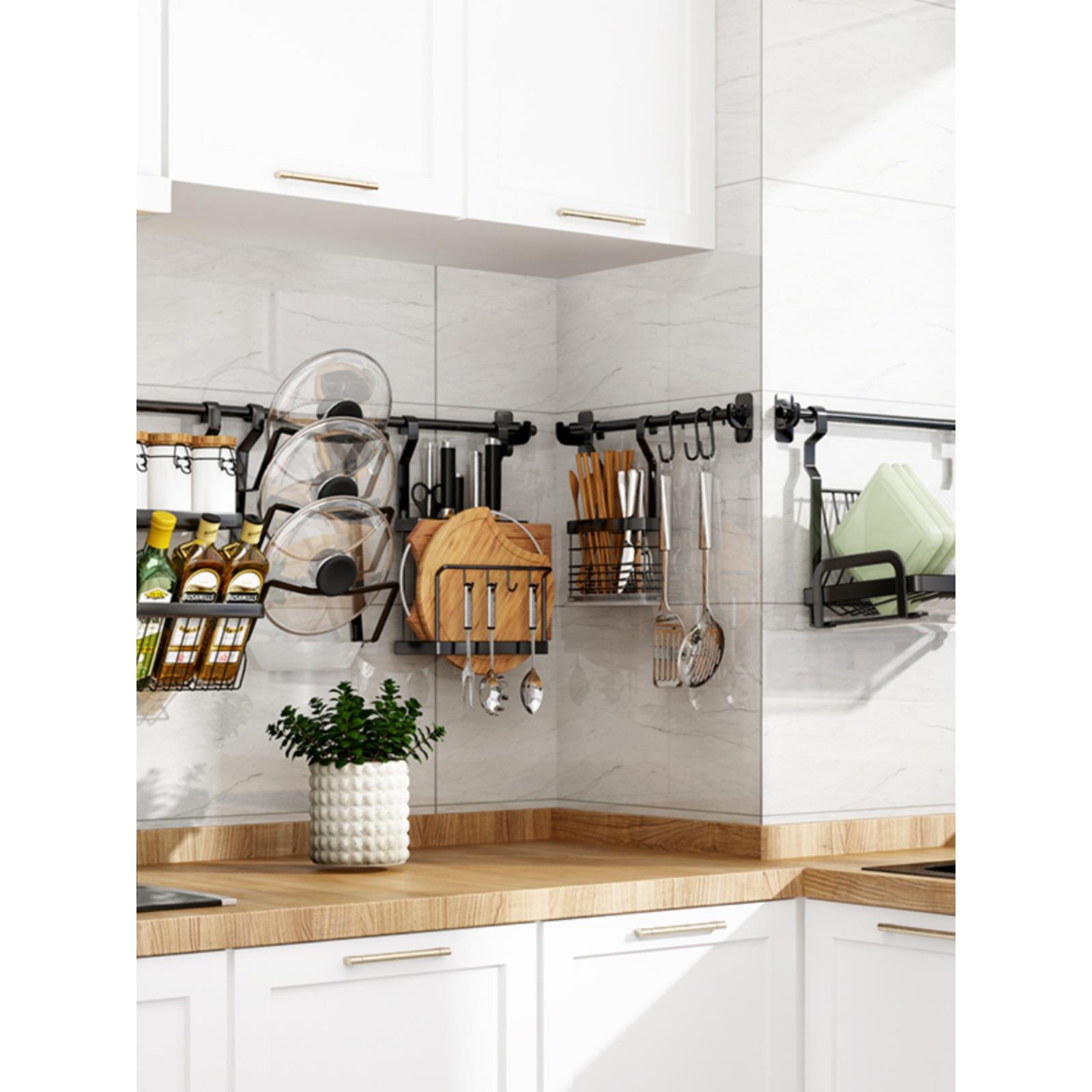 厨房挂架置物架壁挂式免打孔挂杆挂钩碗碟架刀架调料架白色收纳架