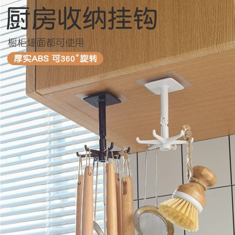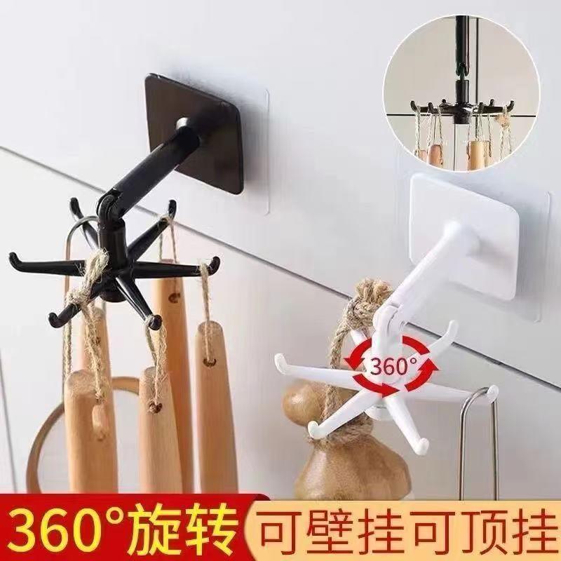 六爪挂钩360度旋转可折叠多功能强力粘胶无痕贴粘钩厨房挂架收纳