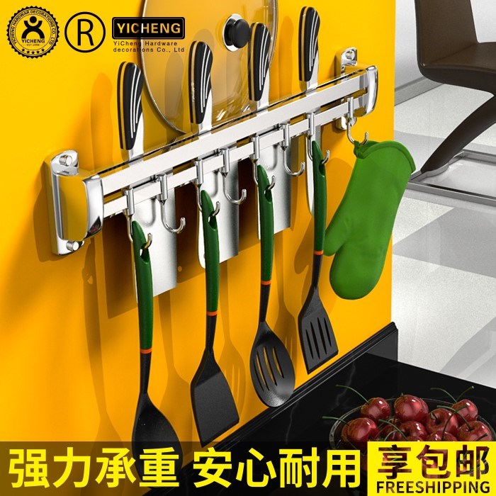 厨房挂架304不锈钢挂式五金插刀架锅铲挂钩菜刀架壁挂锅盖置物架