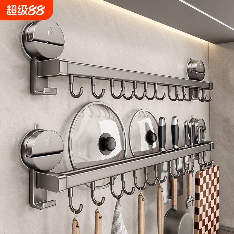 吸盘厨房挂钩置物架免打孔挂杆锅铲勺子铲子挂架排钩壁挂式收纳架