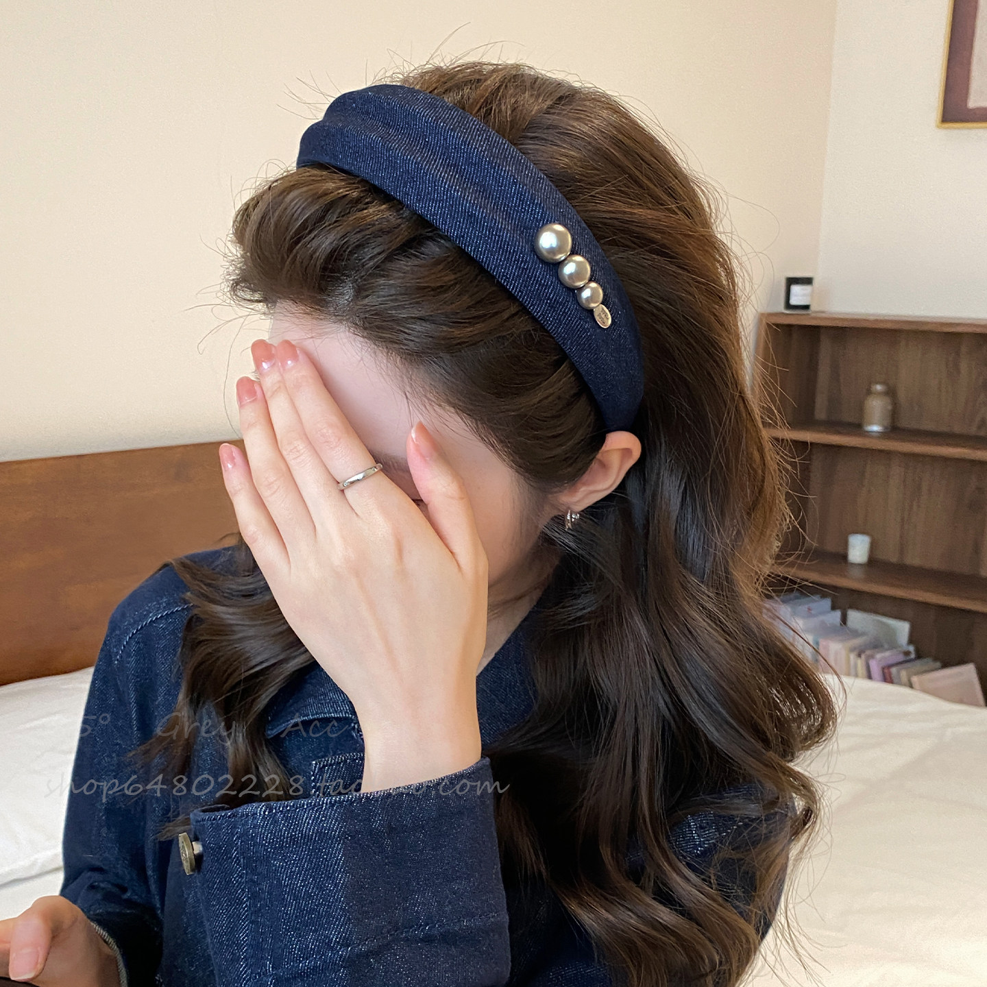 宽边珍珠牛仔发箍女春秋韩系高级感复古气质日常洗脸外出头箍发卡