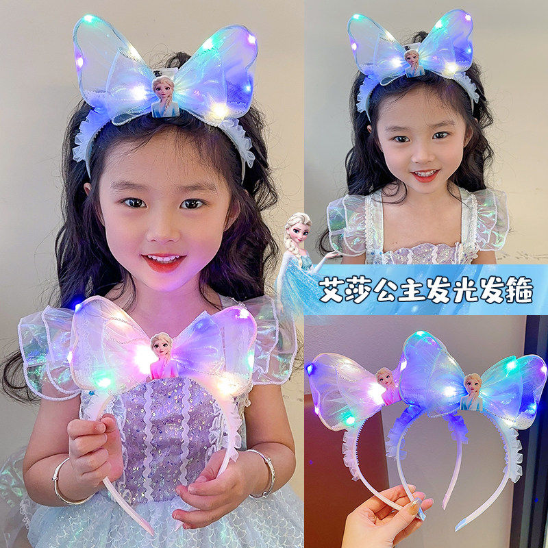 儿童发光网纱发箍女童艾莎公主生日头饰女孩超仙发饰宝宝头箍发卡