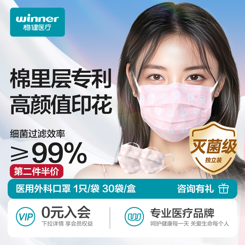 稳健棉里层医用外科口罩成人儿童亲子装轻薄高颜值女医疗独立包装