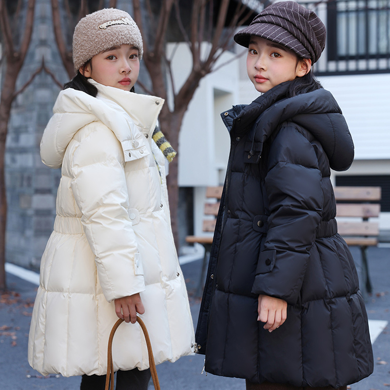 NEXT SHINE女童羽绒服中长款白鸭绒冬装中大童冬季儿童亲子装外套
