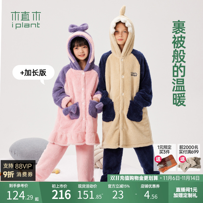 植木童装恐龙长款男童女童家居服2件套中大童2025冬新儿童亲子装