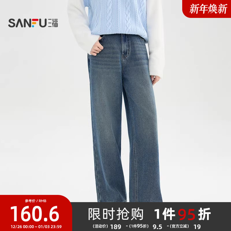 广角裤 太平鸟大直筒牛仔裤2025年秋冬新款宽松加绒阔腿牛仔裤女