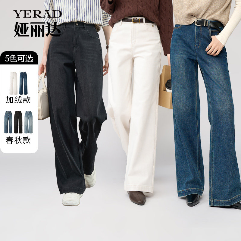 娅丽达加绒直筒牛仔裤女2025秋冬丹宁色裤子小个子防褪色阔腿女裤