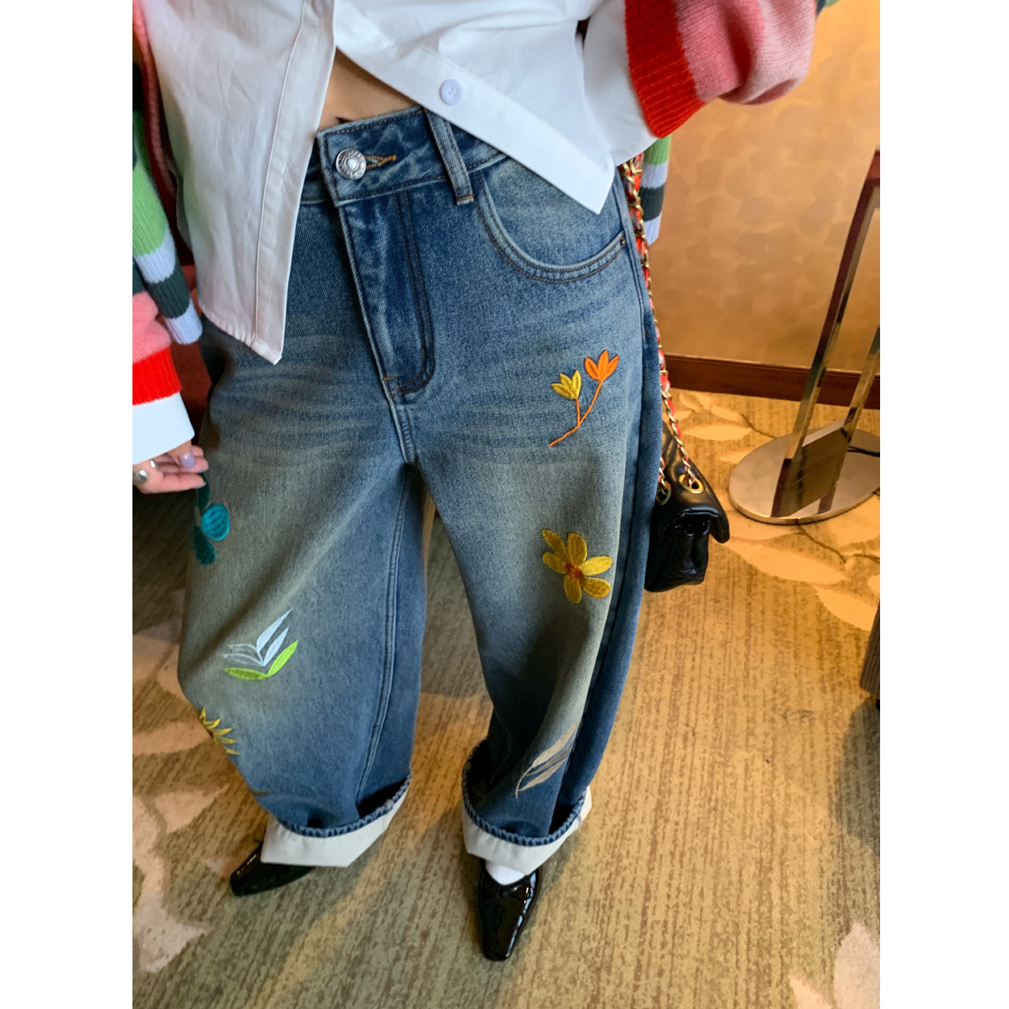 - 翻边牛仔裤
