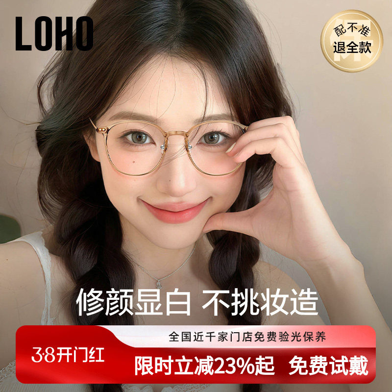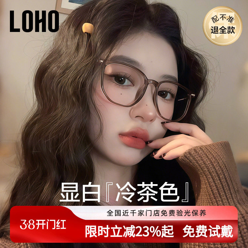 loho冷茶色素颜超轻眼镜女近视可配度数防蓝光大脸高级感眼睛镜框