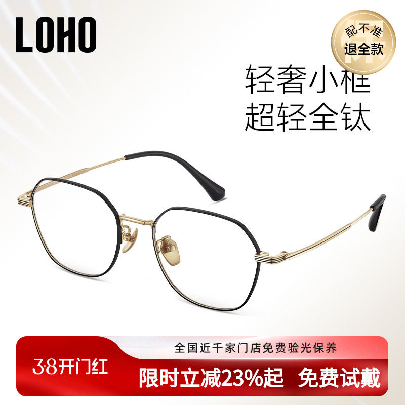 loho纯钛小框近视眼镜复古轻奢眼镜框多边形超轻眼镜架可配高度数