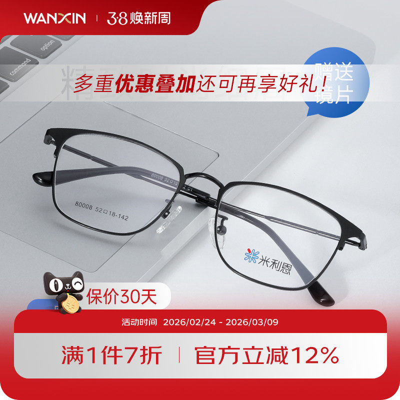 万新近视眼镜 方框防蓝光辐射眼镜框架男女款超轻眼镜MLN80008