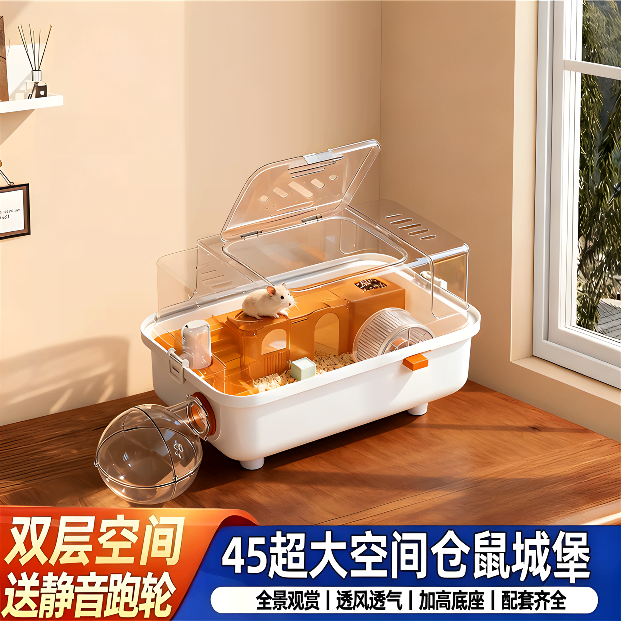 仓鼠笼子别墅防越狱便宜超大透明双层豪华外带宠物笼全景饲养箱子