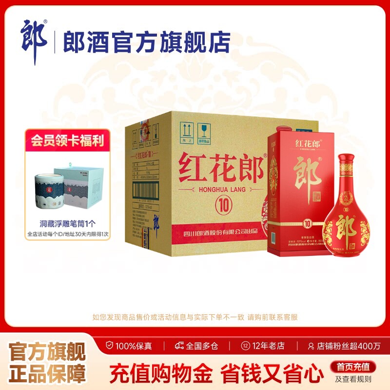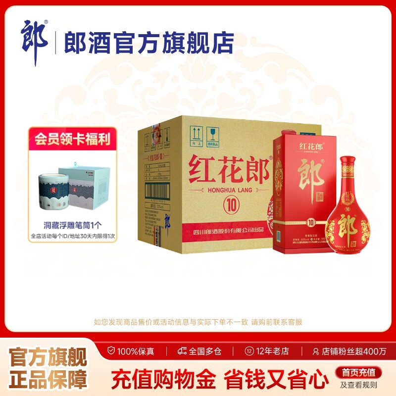 郎酒红花郎酒红十10 酱香型白酒 53度 500mL*6瓶 整箱装 宴请送礼