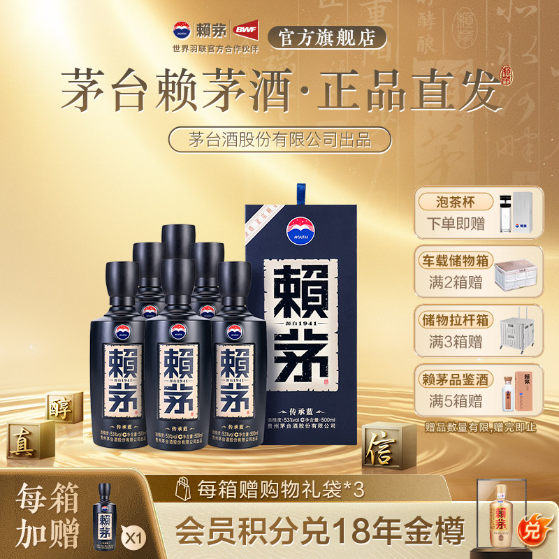 茅台赖茅白酒传承蓝53度500ml*6瓶酱香型整箱装宴请送礼聚会原箱