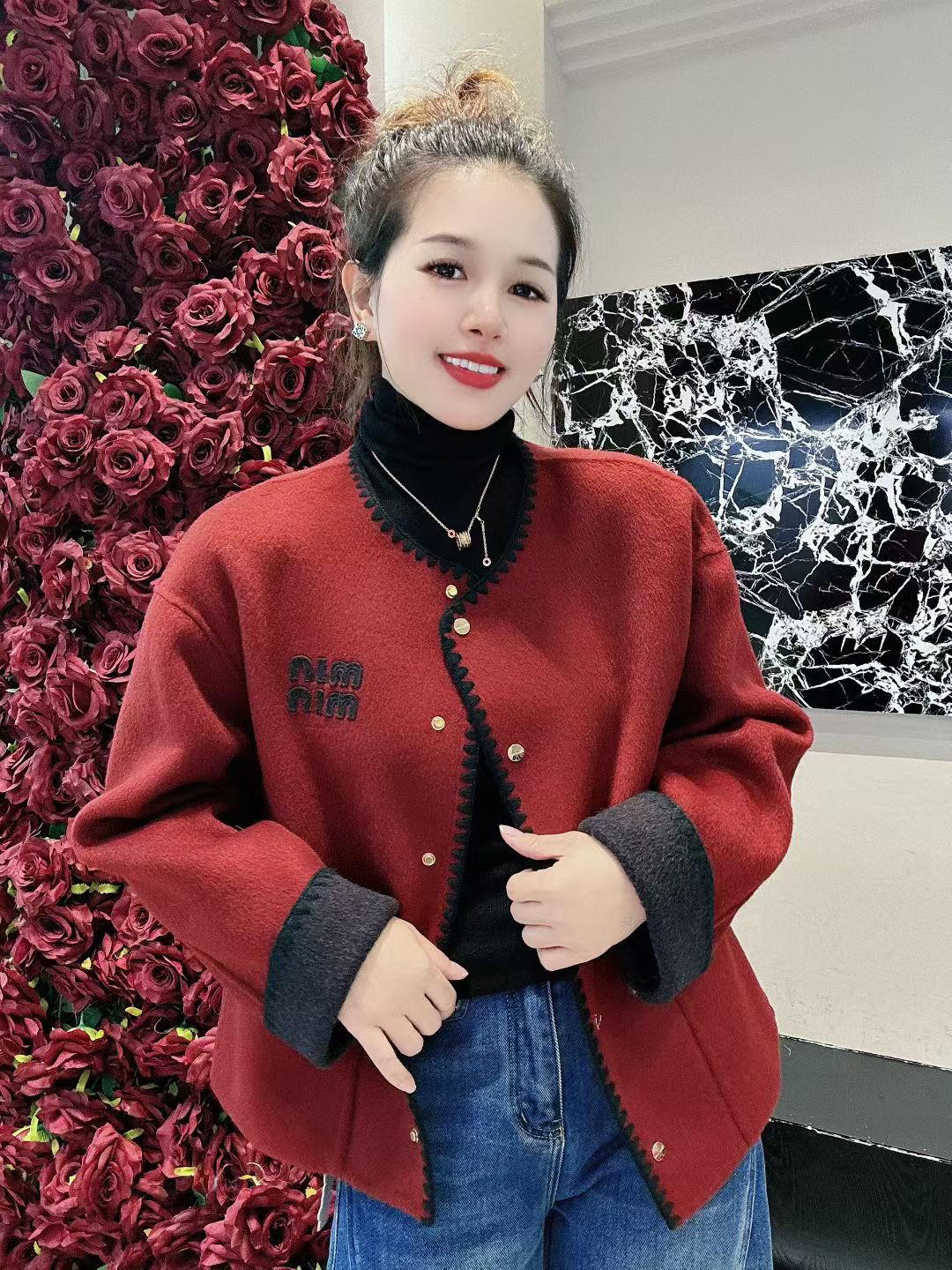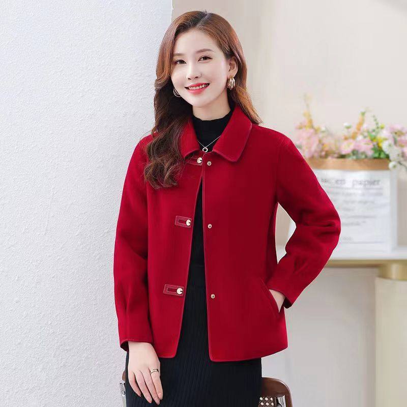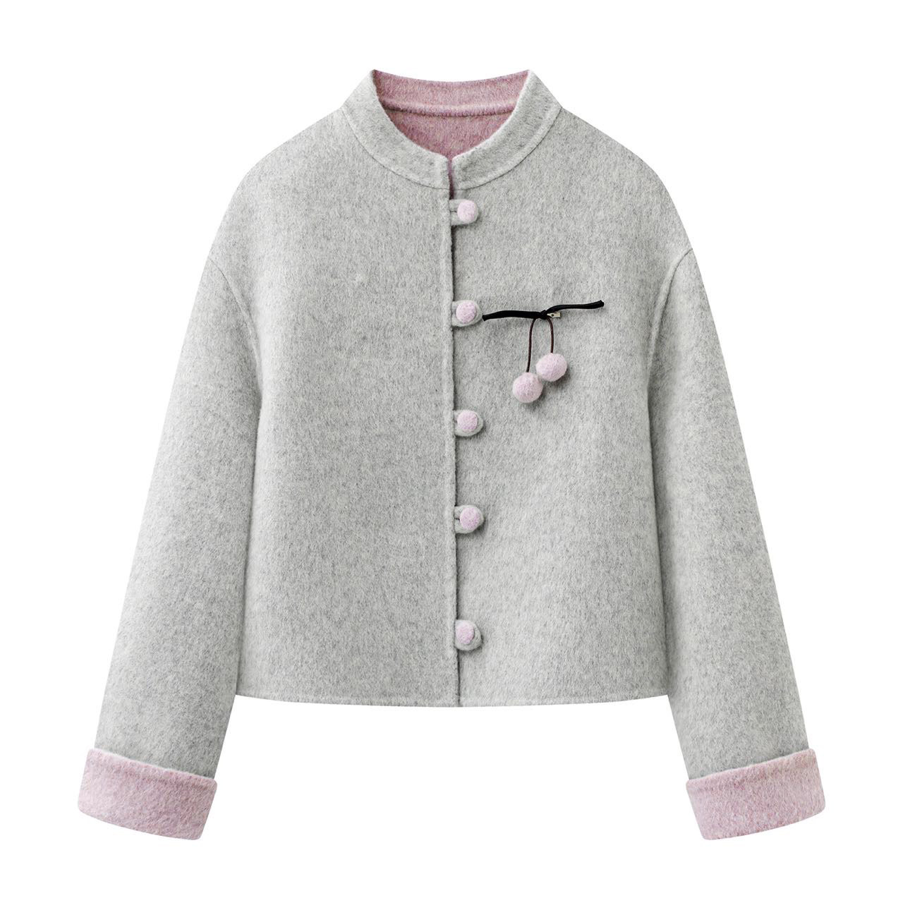 6色新中式国风撞色双面羊绒短外套女2025秋冬新款樱桃羊毛呢大衣