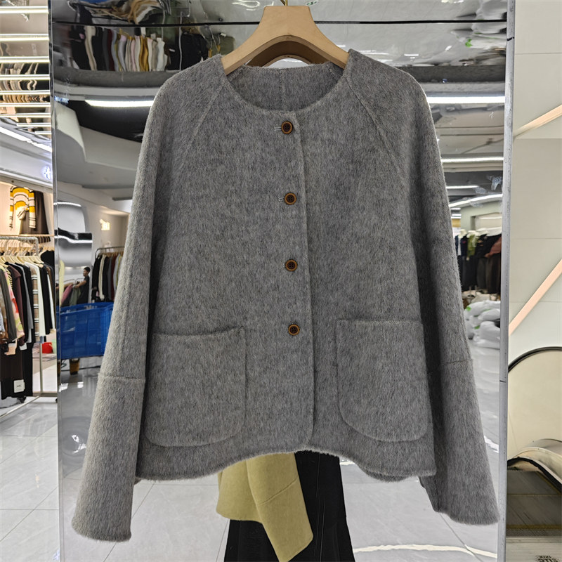 2025冬季新韩版时尚百搭显瘦宽松休闲女潮圆领长袖羊绒短外套女