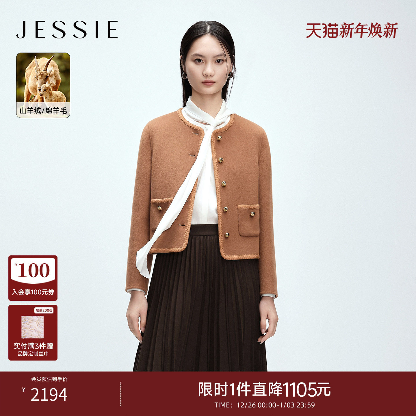 JESSIE2025冬新款小香风双面毛呢外套女流光智性风羊毛羊绒短外套