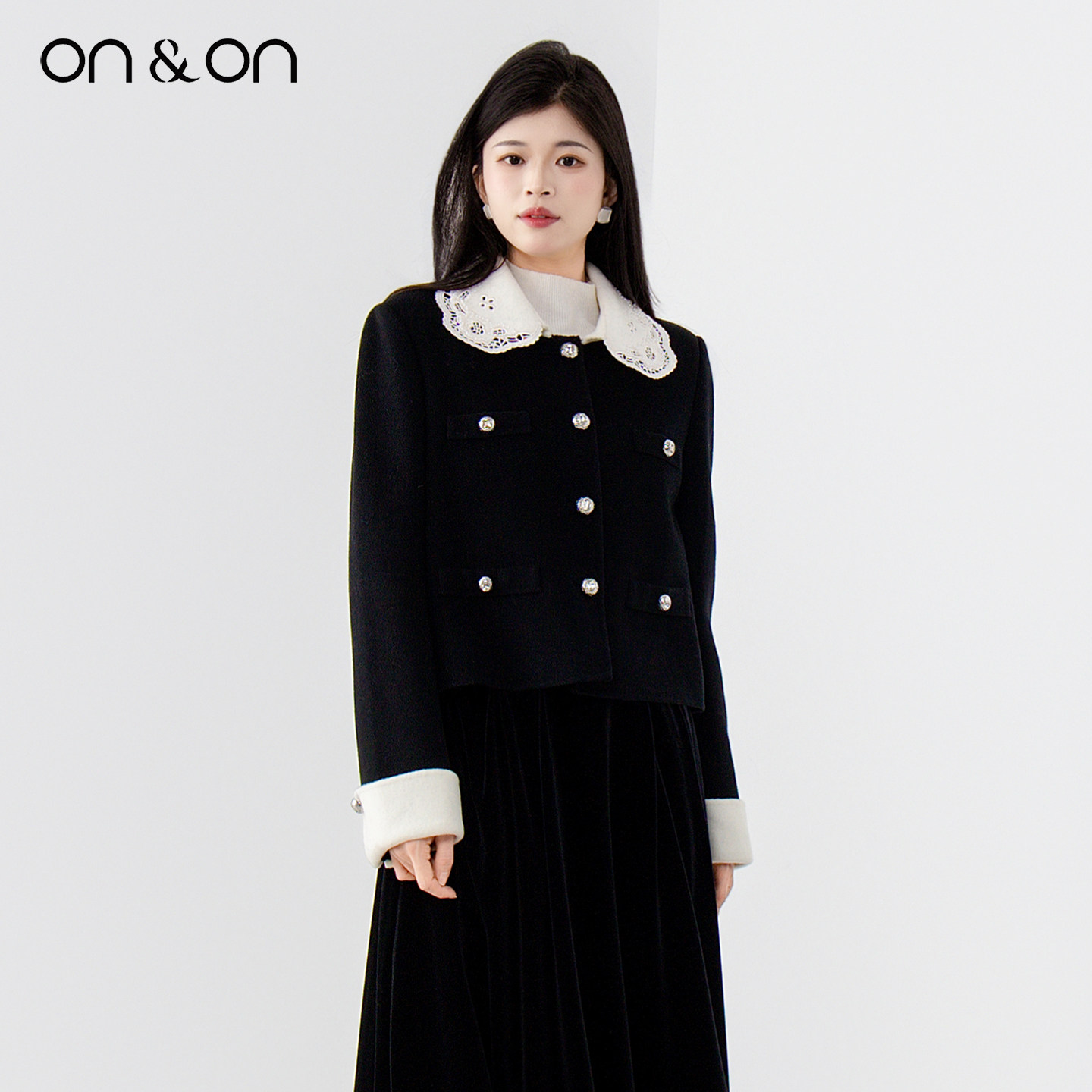 ON&ON/安乃安2025冬季新款法式手工钉珠时尚气质简约羊绒短外套